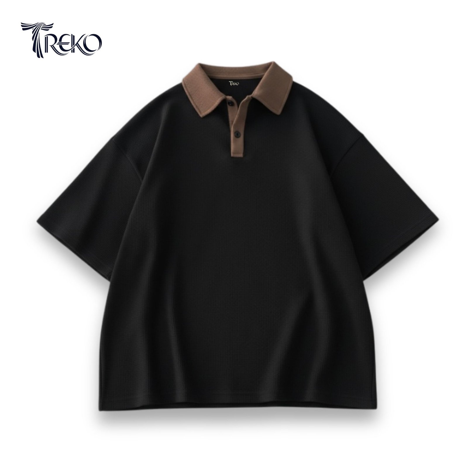 The textured waffle fabric enhances airflow, making it summer-friendly and comfortable for all-day wear. A contrast collar adds a sharp visual edge, elevating the minimalist silhouette with a refined touch. Finished in a boxy, relaxed fit, this polo delivers a contemporary look that works equally well for casual and elevated outfits.