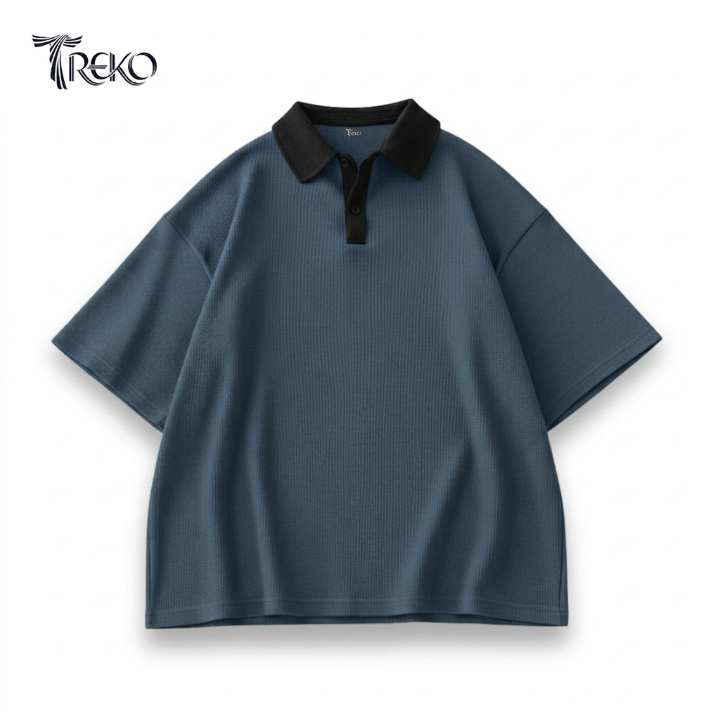 The textured waffle fabric enhances airflow, making it summer-friendly and comfortable for all-day wear. A contrast collar adds a sharp visual edge, elevating the minimalist silhouette with a refined touch. Finished in a oversized, relaxed fit, this polo delivers a contemporary look that works equally well for casual and elevated outfits.